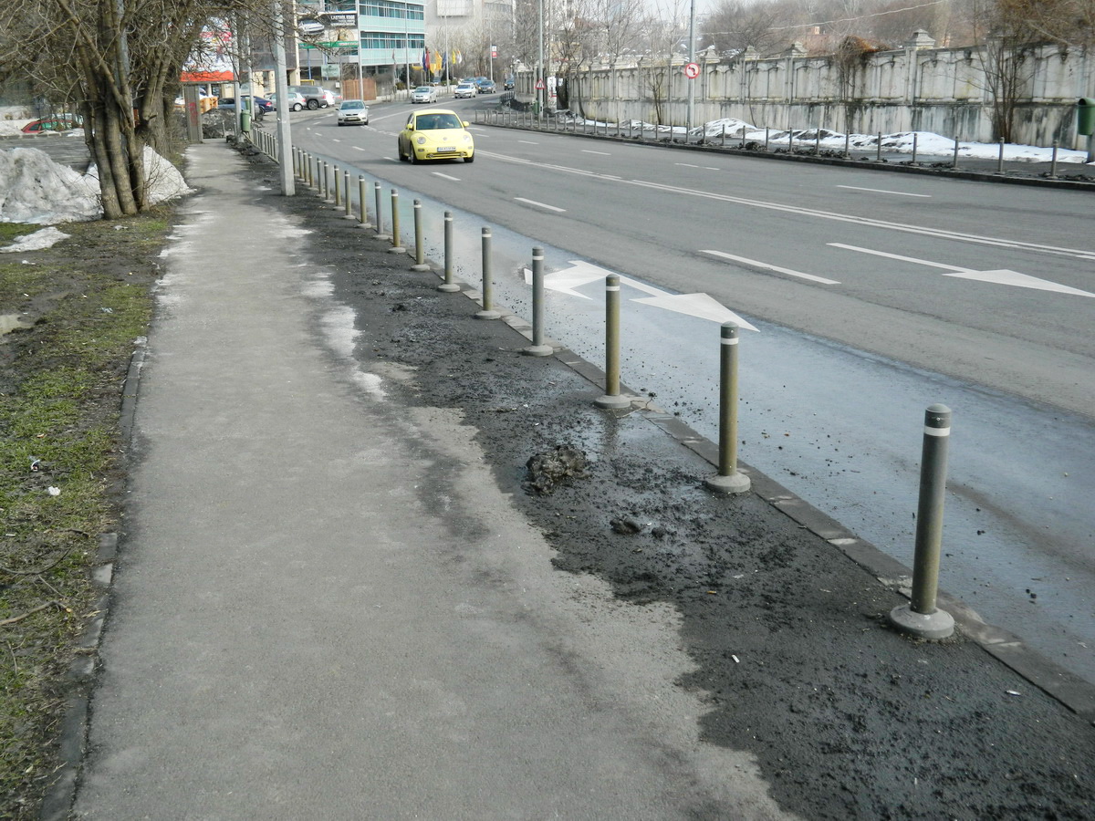 Vremea s-a mai incalzit, primavara se apropie, zapada se topeste, noroiul depus pe zapada ramane pe trotuar, se usuca si se transforma in praf. Bucurestiul redevine asa cum il stim in mod traditional: mizerabil.